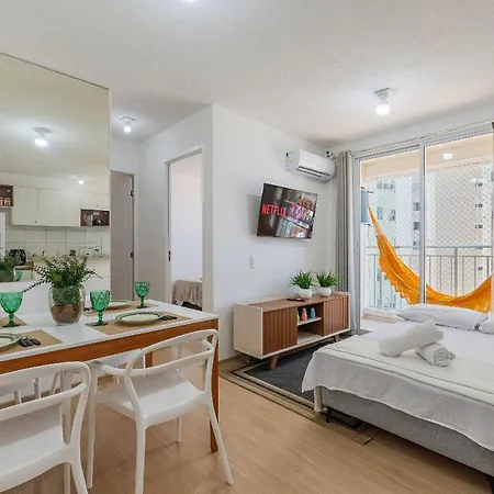 The 48 m² Mirante #408 - Praia Do Futuro By Carpediem Fortaleza apartment is located 16 minutes' walk from the Praia do Futuro and around 7 km from the Mucuripe Lighthouse. Offering a terrace, this apartment also features a swimming pool for guests ultimate relaxation.